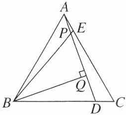 12. 如图,在等边三角形ABC中,点D,E分别在边BC,AC上,且AE=CD,BE与AD相交于点P,BQ⊥AD于点Q。