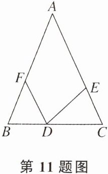 11. 如图,在△ABC中,AB=AC,点D,E,F分别在BC,AC,AB上,BD=CE,CD=BF。