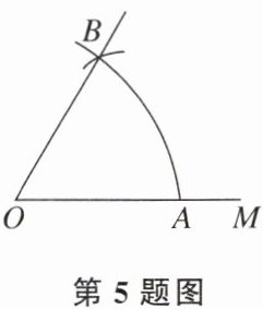 5. 如图,以点O为圆心,任意长为半径画弧,与射线OM交于点A,再以点A为圆心,AO长为半径画弧,两弧交于点B,画出射线OB,则∠AOB= (