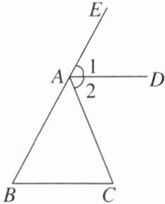 已知:如图,∠CAE是△ABC的外角,∠1= ∠2,AD//BC。求证:AB= AC。