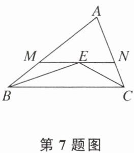 7. 如图,在△ABC中,∠ABC和∠ACB的平分线交于点E,过点E作MN//BC交AB于点M,交AC于点N。若BM+CN= 9,则线段MN的长为