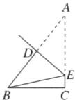 解:如图,折痕为 DE。
