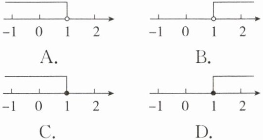 2. 下列关于$x的一元一次不等式x - 1 > 0$的解集在数轴上的表示正确的是(