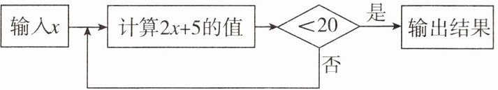 1 7【解析】当$x=-2$时,第1次运算结果为2×(-2)+5=1<20,