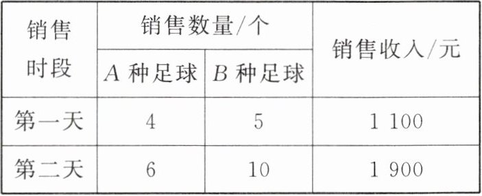 【例 1】足球是世界第一运动,能激发人们的热情,释放和寄托人们的情感。足球不仅是一项运动,更是一种文化,深刻地影响着人们的生活和社会的发展。下表是某商家连续两天销售 A,B 两种足球的情况:
