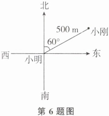 6. 如图,小刚在小明的北偏东60°方向的500 m处,则小明在小刚的