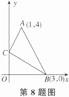 8. 如图,在平面直角坐标系中,点A,B的坐标分别为(1,4)和(3,0),点C是y轴上的一个动点,连结AC,BC,当△ABC的周长最小时,△ABC的周长为( )