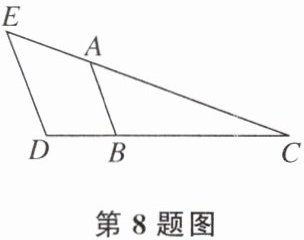 8. 如图,$\angle E= 52°$,$\angle BAC= 52°$,$\angle D= 110°$,求$\angle ABD$的度数。请完善解答过程,并在括号内填写相应的理论依据。