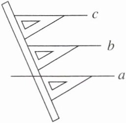 4. 如图,在数学课上,老师画一条直线a,按图中所示的方法,画一条直线b与直线a平行,再向上推三角尺,画一条直线c也与直线a平行,此时,发现直线b与直线c也平行,这就说明了 (
