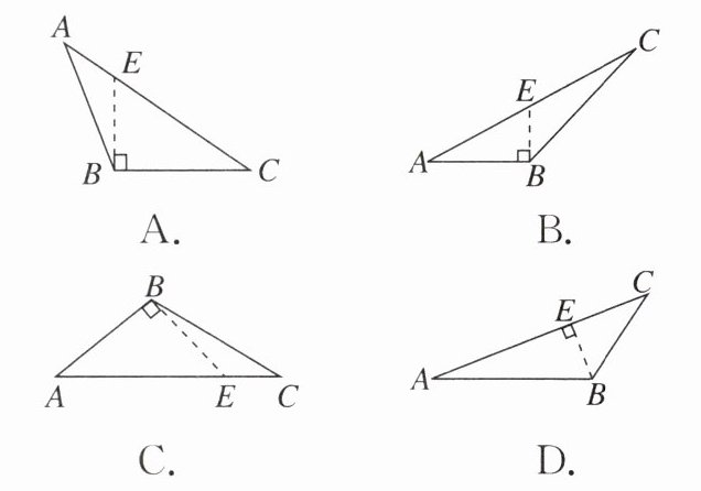 4. 下列图形中,线段BE是△ABC的高线的是(
