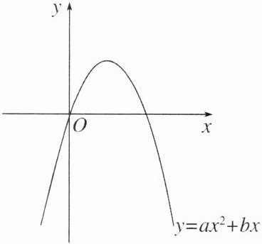 1. 二次函数 $y= ax^2+bx(a≠0)$ 的图象如图所示,则关于 $x$ 的一元二次方程 $ax^2+bx= 0$ 的根的情况是 ( )