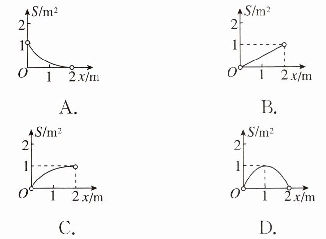 1. 周长是4 m的矩形,它的面积$S(m^2)$与一边长x(m)之间的函数图象大致是 (