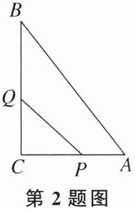 2. 如图,在△ABC中,∠C= 90°,AB= 10 cm,BC= 8 cm,点P从点A沿AC向点C以1 cm/s的速度运动,同时点Q从点C沿CB向点B以2 cm/s的速度运动(点Q运动到点B停止),在运动过程中,四边形PABQ的面积的最小值为 (