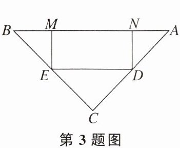 3. 在一块等腰直角三角形铁皮上截一块矩形铁皮.如图,已有的铁皮是等腰直角三角形ABC,它的底边AB长20厘米.要截得的矩形DEMN的边MN在AB上,顶点D,E分别在边AC,BC上,设DE的长为x厘米,矩形DEMN的面积为y平方厘米,那么y关于x的函数表达式是