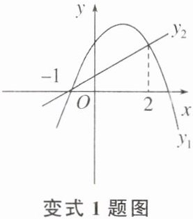 【变式1】如图,这是二次函数$y= ax^{2}+bx+c和一次函数y_{2}= kx+t$的图象,当$y_{1}<y_{2}$时,x的取值范围是 (