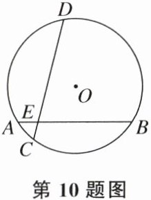 10. 如图,在半径为√13的⊙O中,弦AB与CD相交于点E,∠DEB= 75°,AB= 6,AE= 1,则CD的长是(