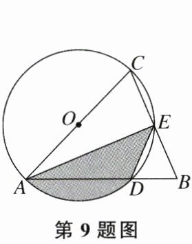 9. 如图,在△ABC中,AB= AC,以AC为直径的⊙O与AB,BC分别交于点D,E,连结AE,DE,若∠BED= 45°,AB= 2,则阴影部分的面积为( )