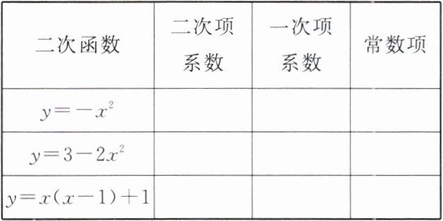 8. 写出下列二次函数的二次项系数、一次项系数和常数项.