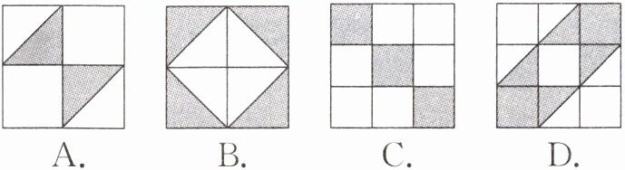 11. 分别向下图所示的四个区域随机掷一枚石子,石子落在阴影部分的可能性最小的是 (