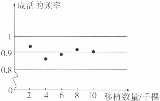 6. 某市林业局要考察一种树苗移植后的成活率,对该市这种树苗移植后的成活情况进行了调查统计,并绘制了如下统计图,根据统计图提供的信息,估计该种树苗成活的概率为______.