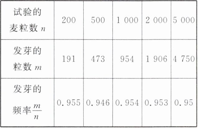 |发芽的频率$\frac{m}{n}$|0.955|0.946|0.954|0.953|0.95|