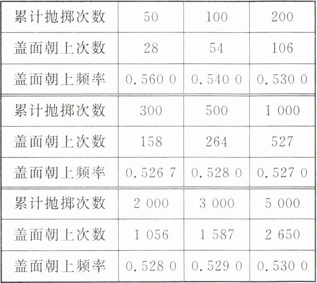 |盖面朝上频率|0.5267|0.5280|0.5270|
