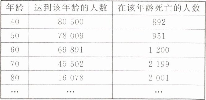 11. 某地区人口状况相对稳定,某保险公司根据多年统计综合,有一张关于该地区人口寿命的表格,现摘录部分内容如下.