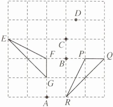 10. 如图,在正方形网格中,$\triangle EFG绕某一点旋转某一角度得到\triangle RPQ$.则旋转中心可能是(