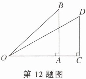 12. 如图,将一副三角板重叠放置,其中$30°和45°$的两个角的顶点重合在一起.若将三角板$AOB绕点O$旋转,在旋转过程中,当$AB// OC$时,$\angle BOC= $