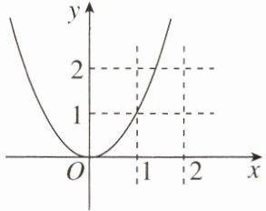 12. 如图,若抛物线$y= ax^{2}(a\neq0)与四条直线x= 1$,$x= 2$,$y= 1$,$y= 2$围成的正方形有公共点(包括边界及顶点),则a的取值范围为