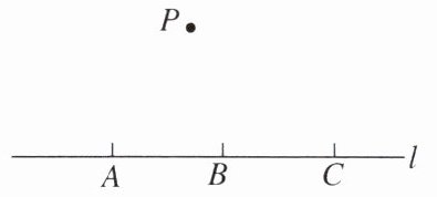 7. 如图,点 A,B,C 均在直线 $l$ 上,点 P 在直线 $l$ 外,则经过其中任意三个点,最多可画出圆的个数为______.