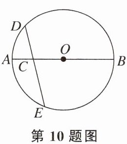 10. 如图,C是⊙O直径AB上的一点,过点C作弦DE,使CD= CO,若$\overset{\frown}{AD}$所对圆心角的度数为40°,则$\overset{\frown}{BE}$所对圆心角的度数为(