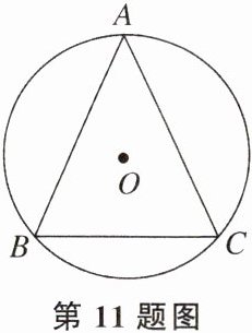 11. 已知⊙O的半径为2,△ABC内接于⊙O,$\overset{\frown}{AB}$,$\overset{\frown}{BC}$,$\overset{\frown}{AC}$的长之比为3∶2∶3,则BC的长为