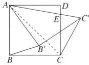 16. 如图,将正方形 $ABCD$ 的边 $AB$,$BC$ 绕着点 $A$ 逆时针旋转一定角度,得到线段 $AB'$,$B'C'$,连结 $AC'$ 交 $CD$ 于点 $E$,连结 $BB'$,$CC'$,若 $\triangle ABB'\sim\triangle CEC'$,则 $\angle ABB'= $______.
