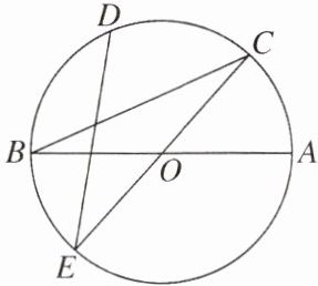 $\because \angle ABC=\frac{1}{2}\angle AOC$,$\angle ABC=34^\circ$,$\therefore \angle AOC=68^\circ$.$\therefore \angle BOC=180^\circ - 68^\circ=112^\circ$.$\because$ D 是劣弧 BC 的中点,$\therefore \angle BOD=\angle COD=\frac{1}{2}\angle BOC=56^\circ$,$\therefore \angle CED=\frac{1}{2}\angle COD=28^\circ$.