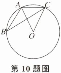 10. 如图,△ABC的顶点A,B,C均在⊙O上,连结OA,OC,若∠ABC+∠AOC= 75°,则∠OAC的度数是(
