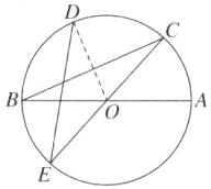 (2)过点 O 作半径$OD\perp AB$于点 E,连结 DB,$\therefore AE=BE$.$\because \angle AOB=2\angle BOC$,$\angle DOB=\frac{1}{2}\angle AOB$,