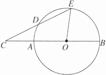 8. 如图,AB 是$\odot O$的直径,C 是 BA 延长线上一点,点 D 在$\odot O$上,且$CD= OE$,CD 的延长线交$\odot O$于点 E. 若$\angle C= 25°$,则$\angle CEO$的度数为______°.