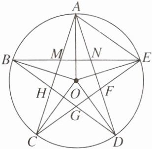 13. 如图,A,B,C,D,E是⊙O上的五等分点,连结AC,CE,EB,BD,DA,得到一个五角星图形和五边形MNFGH.
