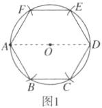 (1)如图1,首先作直径AD,然后分别以A,D为圆心,OA长为半径画弧,分别交⊙O于点B,F,C,E,连结AB,BC,CD,DE,EF,AF,则正六边形ABCDEF即为所求作的图形.