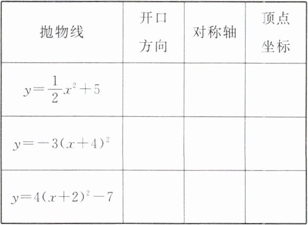| 抛物线 | 开口方向 | 对称轴 | 顶点坐标 |