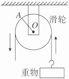 5. 一个滑轮起重装置如下图所示,滑轮的半径是 10 cm,OA 是滑轮的一条半径,当 OA 绕轴心 O 逆时针方向旋转$180°$时,重物上升的高度为( )