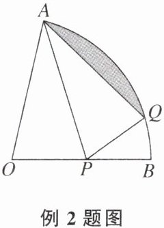 【例2】如图,在扇形AOB中,$OA= 1$,P为OB上的一个动点,将$\triangle OAP$沿AP折叠,当点O的对应点Q落在$\overset{\frown}{AB}$上时,图中阴影部分的面积为______.