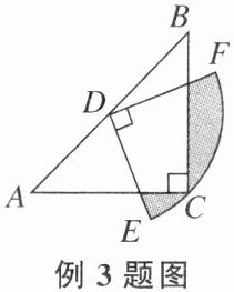 【例4】如图,在$\triangle ABC$中,$CA= CB$,$\angle ACB= 90°$,$AB= 2$,D为AB的中点,以点D为圆心作圆心角为$90°$的扇形EDF,点C恰在$\overset{\frown}{EF}$上,则图中阴影部分的面积为______.