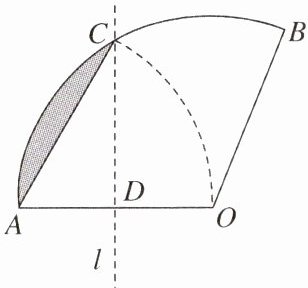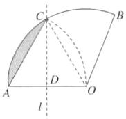 8. 如图,将扇形AOB翻折,使点A与圆心O重合,展开后折痕所在直线l与弧AB交于点C,连结AC.若OA=3,则图中阴影部分的面积是______.(结果保留π)