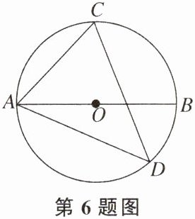 6. 如图,AB是⊙O的直径,CD是⊙O的弦,连结AC,AD,若∠ACD=65°,则∠BAD的度数为