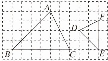 9. 已知△ABC与△DEF在网格中的位置如下图所示,每个小正方形的边长都是1.