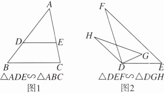 AD与AB,AE与AC,DE与BC ∠E与∠G,∠EDF与∠GDH,∠F与∠H