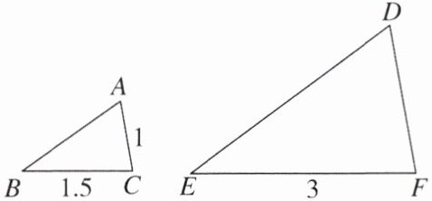2. 如图,$\triangle ABC\backsim\triangle DEF$,则$DF$的长是( )
