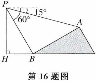 16. 如图,小明在距离地面30米的P处测得A处的俯角为15°,B处的俯角为60°.若斜面坡比为1∶$\sqrt{3}$,则斜坡AB的长是